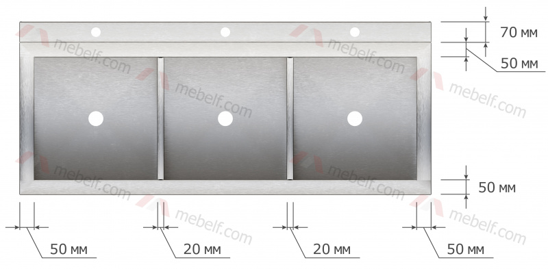 | Ванна моечная трехсекционная "Бизнес" ВМБ 1300/603 без борта |